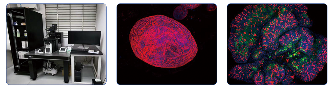 FV3000共聚焦系统可以对荧光染料及荧光蛋白等标记进行观察,并能进行多通道荧光信号的高分辨率多维同步采集;后续将信号图片进行分析处