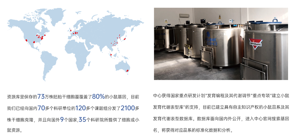 通过多年努力,中心小鼠精子库已初具规模,收录超过1000余个品系的小鼠品系资源。已向美国、英国、法国、德国、日本、新加坡、澳大利亚诸多